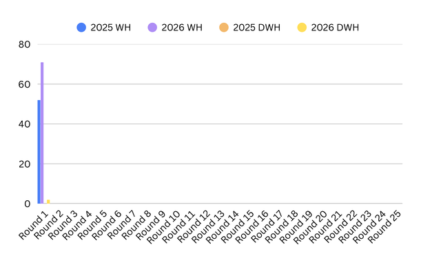 There were 71 WH’s in Round 1 with 2 players scoring a DWH.
