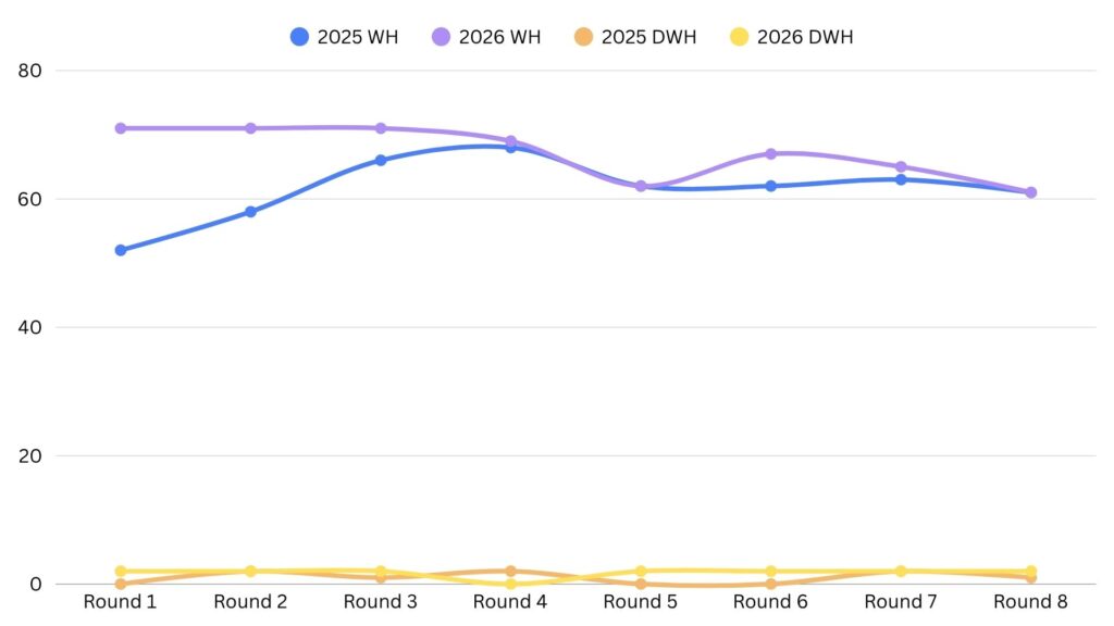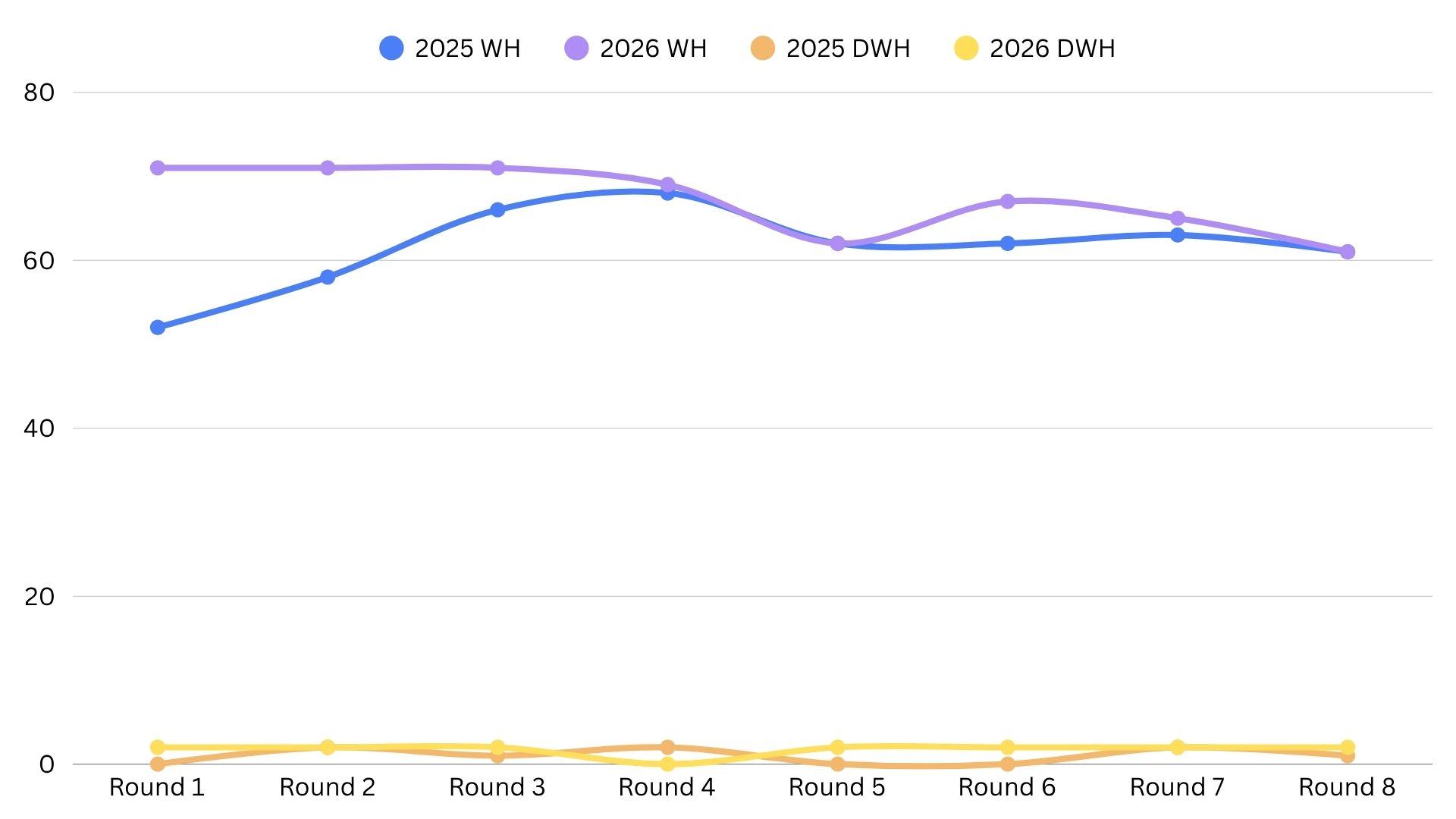 Twal scored his third consecutive DWH and he is showing no signs of slowing down, consistently playing the full 80 minutes without even looking fatigued. It is unclear what has changed for Twal in 2026, is it fitness or desire, whatever it is the Tigers are much better for it. He is well on track to record a career best NRLCEO season, needin only to surpass his 107 points from 2021.